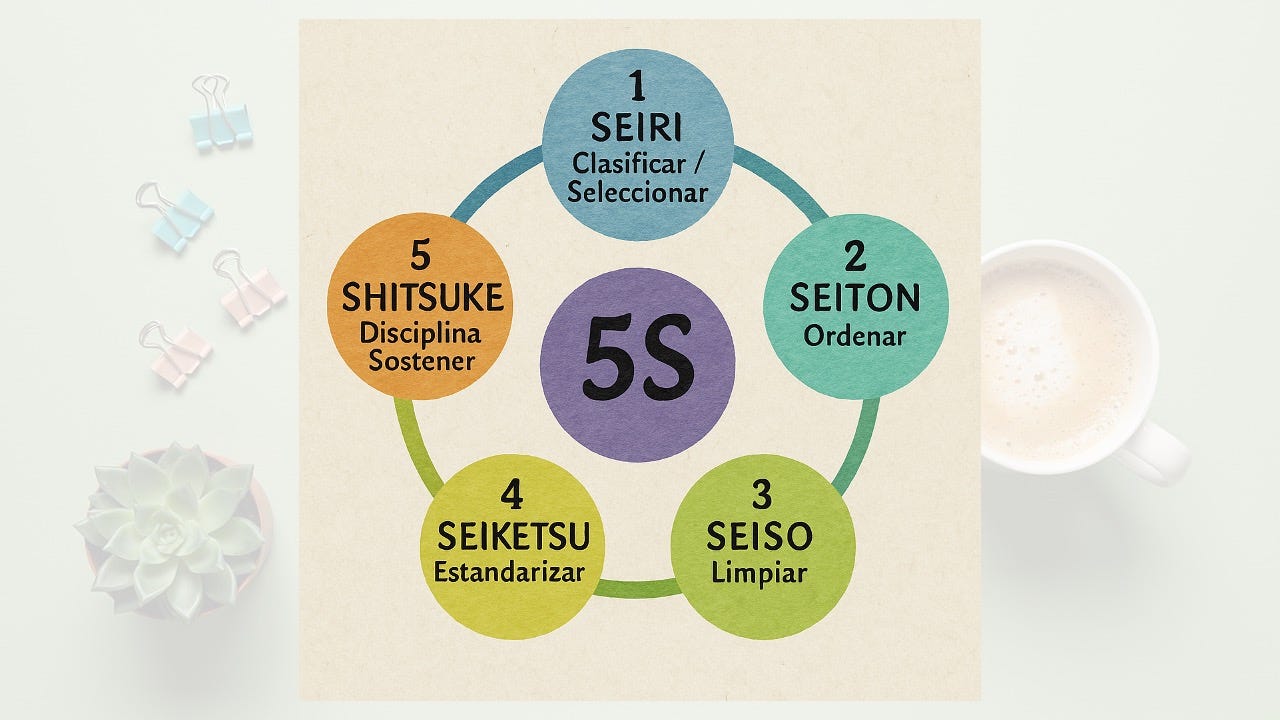 El sistema 5S es uno de los métodos japoneses de organización más extendidos y una herramienta fundamental para crear espacios ordenados, seguros y eficientes. Nació en el entorno industrial japonés —especialmente en Toyota—, pero hoy se aplica en escuelas, oficinas, hogares y cualquier contexto donde el orden físico sea determinante para la productividad.